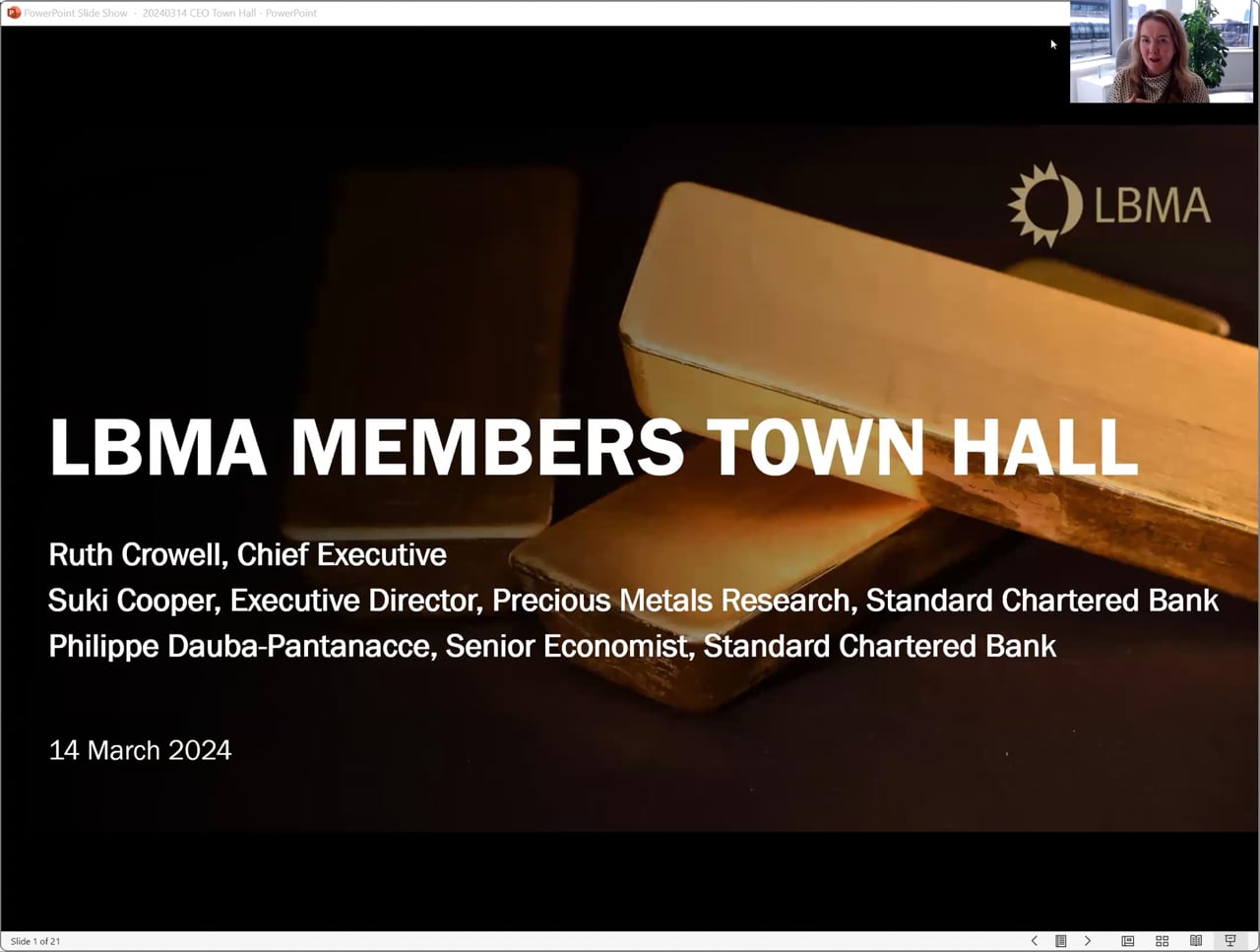 Listen to our most recent CEO Members' Town Hall, in which Ruth Crowell (Chief Executive, LBMA) shared the latest updates on LBMA's strategic projects, including the launch of Member feedback for the new three-year plan.